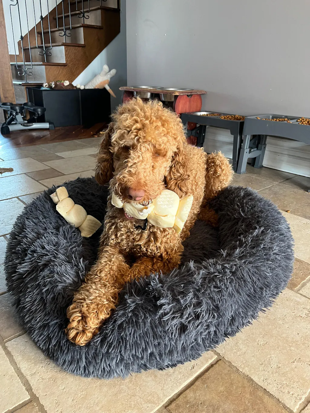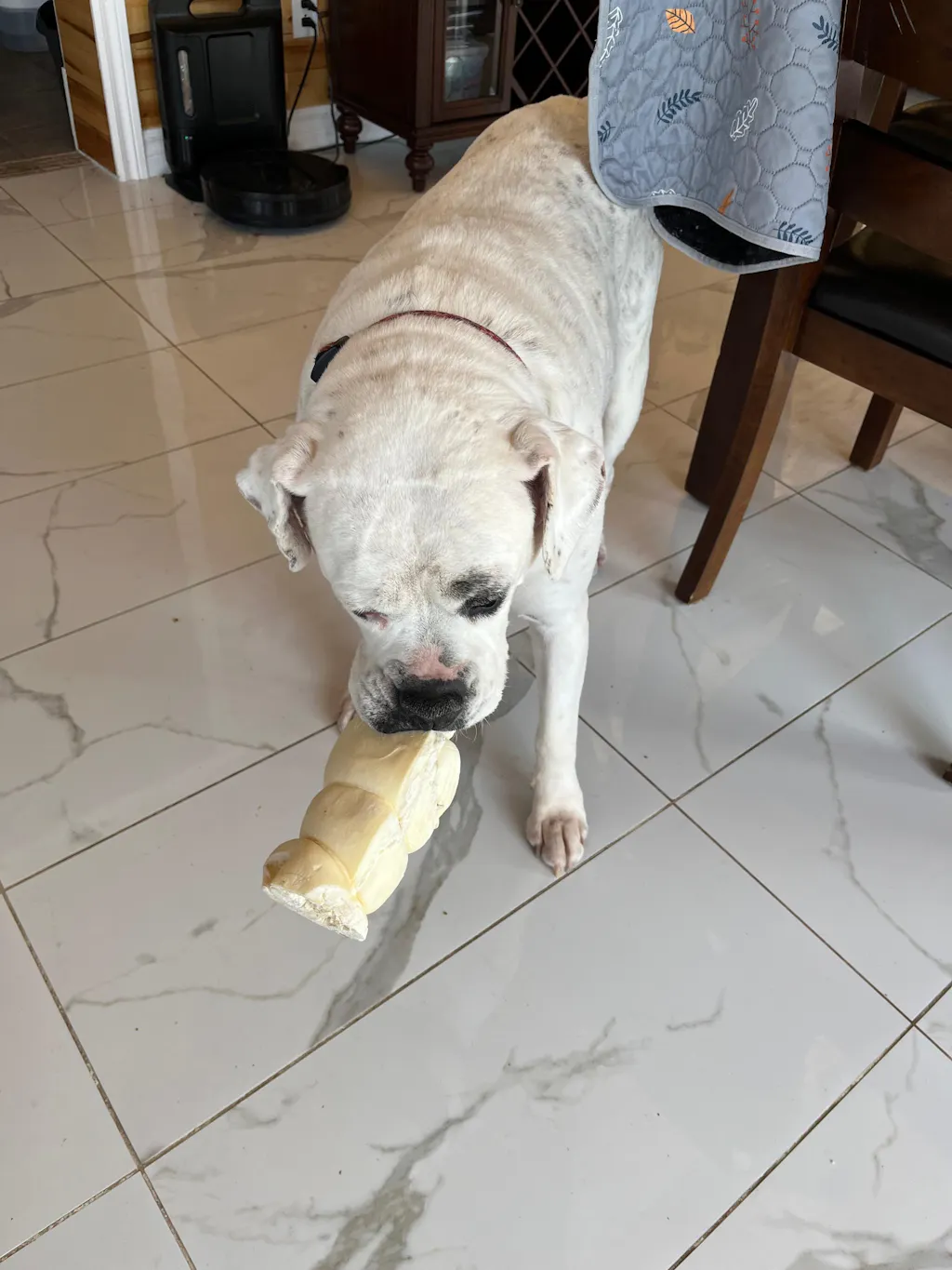 Surveille toujours ton chien lorsqu’il déguste sa gâterie 🐶💙. Assure-toi qu’il ait toujours accès à de l’eau fraîche.